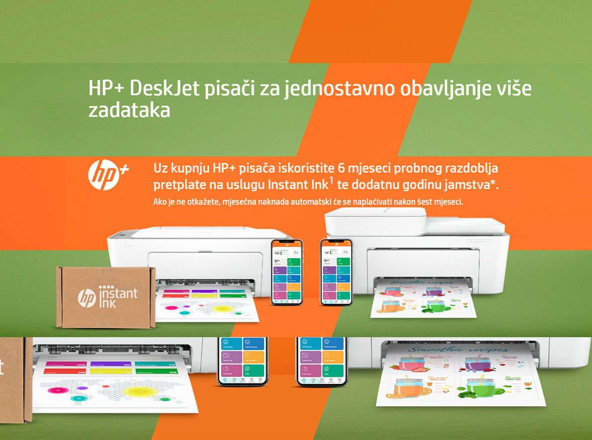 Uz kupnju HP+ pisača iskoristite 6 mjeseci probnog razdoblja pretplate na uslugu Instant Ink1 te dodatnu godinu jamstva*.