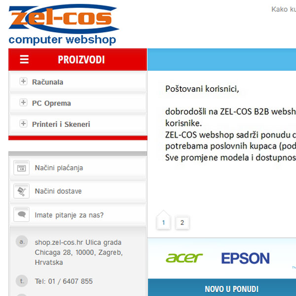 Zel-Cos d.o.o. za elektroničko-informatičke usluge i marketing, Nova cesta 166, 10000 Zagreb., Transakcijski račun: 2360000-1101194923, IBAN: HR5323600001101194923 otvoren kod Zagrebačke banke d.d., 2500009-1101365330, IBAN: HR3725000091101365330 otvoren kod ADDIKO d.d. i 2340009-1110626430, IBAN: HR4523400091110626430 otvoren kod Privredne banke Zagreb d.d., Temeljni kapital u iznosu 149.000,00 kn uplaćen je u cijelosti. Direktor Dubravko Puhelek. Porezni broj: 03693350, OIB: 07306591551